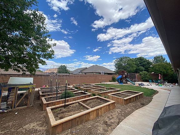 This home is perfect for a second home getaway for a full-time residence. The moment you drive up to the property you will see beautiful mature trees in the front yard landscaped beautifully with roses and a fountain. The walkway is edged with flowerbeds to make the entryway even more spectacular. To the left of the house is a massive RV pad with full water and power hook ups. Once you open the garage doors you’ll be pleased with nearly 1000 ft.² of garage space. Built in is a large sink with hot and cold water. As you walk in the kitchen and living room have a modern feel of openness and still a slight feel of separation. The amount of windows allow an incredible amount of natural light into the living room and kitchen. As you look out the living room picture window you can see Pine Valley Mountain. As you go into the master bedroom it is very large even with a king size bed and a large dresser set. The double sink in the master bathroom is very nice to allow his and hers comforts. You’ll be pleased to have a large jetted tub, separate commode, double headed walk-in tiled shower and a very large walk-in closet all in the master alone. There are two more standard bedrooms. The office/Den/5th bedroom has been converted into a Elsa castle/TV room for the children. Fully custom built. The bedroom on the west side of the house has fully been converted into a Casita. The Jack and Jill bathroom that was used was walled off to allow only access One Direction. This could be changed very easily. The Casitas entrance has access to the washer and dryer and walks through the salon and the garage to exit. A separate door could be installed to allow 100% private entrance. It is currently rented out at 850 a month. As you step out on your very large patio you have the option of two fans and a fully electronic huge awning. If you would like to install a hot tub the breaker box and pipes are already run under the concrete. There is a secondary garden spot on the east side of the house or a storage area. In the backyard there is six large square foot gardening boxes a full play area and a Astroturf golfing putting area. Purchase price house must include a one-year lease back with a $25,000 hold back to be paid for once we are completely out of the home. To see this home you must be preapproved through Sun American Mortgage or send me a proof of funds. Disclaimer: I am a licensed real estate agent in the state of Utah.