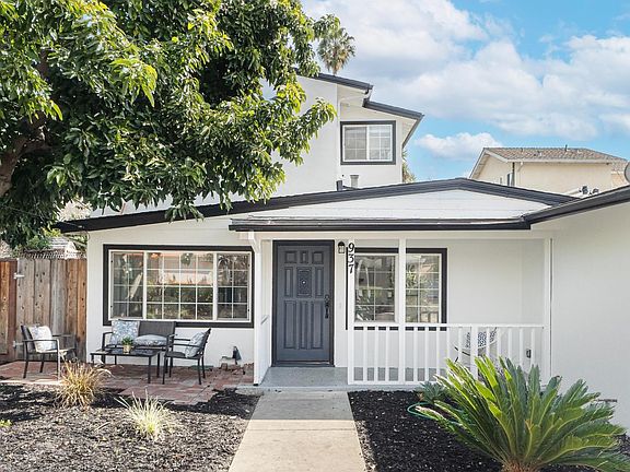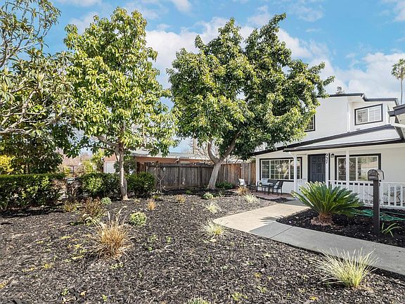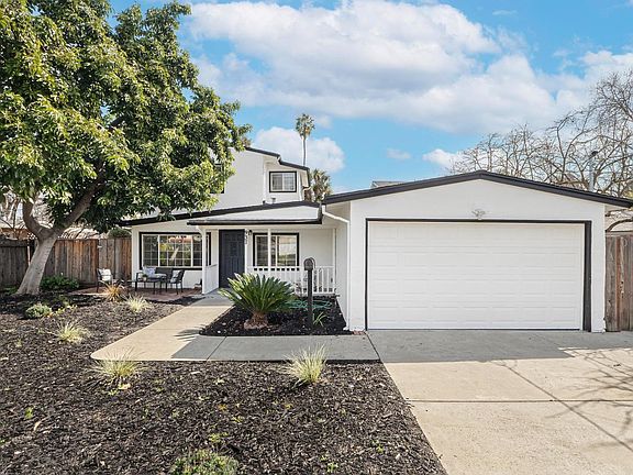 Welcome to this gorgeous, updated home in Mountain View, featuring 3 beds and 2 baths. The large front yard includes a covered porch. Inside, an open floor plan connects the formal dining area, breakfast area, and kitchen. Recessed lighting throughout enhances the modern design. The updated kitchen boasts an island, skylight, beautiful countertops with backsplash, sleek white cabinetry, and stainless steel appliances. A sliding door leads to the backyard with a pool, perfect for indoor-outdoor living. The spacious living room, connected to the dining area, features a cozy fireplace. The hallway leads to two bedrooms and an updated bathroom with a stall shower and lighted mirror. The primary en-suite on the second floor includes an updated bathroom with a lighted mirror and stall shower, plus a private enclosed balcony providing extra activity space. An attached two-car garage includes a washer and dryer. Conveniently located near parks, shopping, dining, and major tech companies, with easy access to Central Expressway and Highways 85, 101 & 237. Zoned for top-rated Los Altos High School. Don't miss this incredible opportunity!