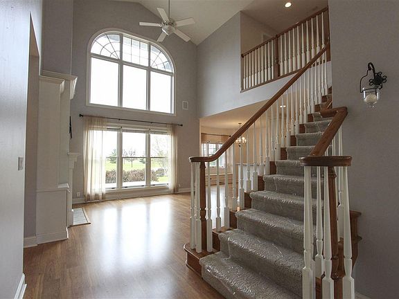 Masterfully built! This sensational two-story home offers three fully finished levels with soaring windows and immaculate living spaces. You will love the location on the Fox Ridge Golf Course! The moment you step inside, you will be amazed by the open and impressive entryway and Great Room that welcomes you. This elegant space features beautiful wood flooring that flows throughout the rest of the main floor, as well as a center fireplace, and expansive windows with amazing views of the backyard and golf course. The great room flows freely into the dining area and kitchen, which boasts clean and classic styling with the stunning cabinetry, stainless steel appliances, and long countertops. Located just next to the kitchen, you have a convenient laundry room, as well as a formal dining room looking over the front of the house. You'll also find a great study or office area with beautiful French doors. The master bedroom and en-suite is a stunning re-treat with a large walk-in closet, dual vanities and spa-like bath to soak in for some pampering. Making your way to the upper level, you have two nicely sized bedrooms, a full bathroom, and spacious bonus room. The finished lower level offers a vast family room space with fireplace, a generous sized spare bedroom, and an additional full bathroom. Other amenities include an oversized three stall garage, central vac system, spacious deck, meticulous landscaping, and much, much more. Don't miss out on this outstanding property! Act quickly!