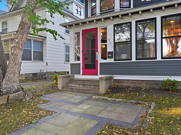Upstairs, you’ll find four spacious bedrooms, each with its own closet, including two charming front-facing rooms with bay windows, plus a full bath featuring a classic cast-iron tub. The pure hardwood flooring continues throughout the second level, preserving the home’s vintage authenticity.