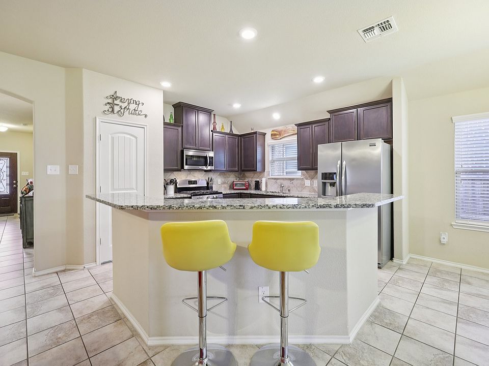 • Spacious Kitchen with Granite Countertops, ample Cabinet Space, and a Spacious Pantry