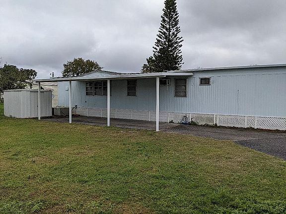 Charming 2 Bedroom 1 Bath single wide mobile home in resident owned Brittany Estates on beautiful Lake Griffin in Leesburg, FL. Fully furnished with 2 new queen beds and move-in ready. Central air and heat. Attached storage room with washer, dryer and standard house-size hot water heater off large screened-in lanai. Ample sized 2 car carport. Detached storage shed outside at end of carport. Many amenities in the community with pool, clubhouse, and library all in close walking distance. Seasonal weekly and monthly activities in this 55+ yr. old friendly and social community including but not limited to bingo, dances, pot-luck dinners, community breakfasts, shuffleboard, pool tables, horse shoes, various on-site social activities and much, much more. Monthly maintenance fee of $305 includes water, sewer, trash collection and yard mowing within 2 feet of the home. Immediately available. Application for residency in Brittany Estates and approval is required before home can be sold. One dog or cat is permitted weighing not more than 25 lbs at maturity (no exceptions permitted).