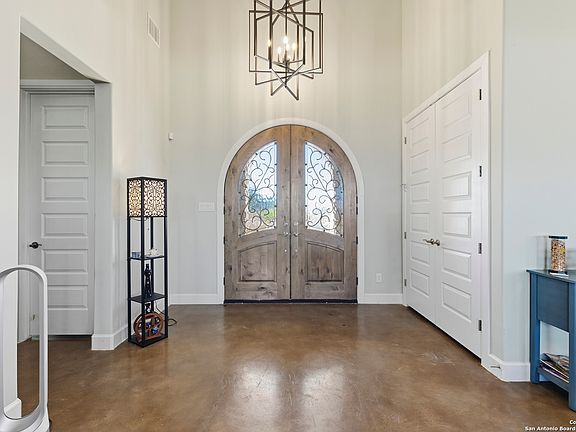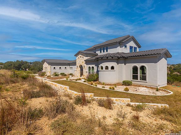 Welcome to your Stunning, 4/2.5(2)/3 home, on 2.66 acres in the absolutely gorgeous Mystic Shores. This home has Amazing views of the Hill Country and Canyon Lake. The curb appeal is eye catching with the front and back yard sprinkler system, native and drought resistance plants, and keeping the natural landscape. You will feel right at home here with all the space you get, not only in the bedroom sizes, but the craft room, gym and office and don't forget the Loft upstairs with its own half bath. You have a 3 car, attached garage with a side entry. As you enter this beautifully light filled home, take note of the gorgeous wood front door and the notable stained concrete flooring.. The entry is wide and flows into your open-floorplan home. Your living room features an incredible Groin Ceiling and bespoke windows for that natural light to come through. Your dining area is open to the kitchen and shows off an exquisite chandelier. The gourmet kitchen, the heart of any home, gives you gorgeous granite counter tops, classic whit subway tile, stainless steel appliances, an island with breakfast bar, graceful custom wood cabinets that offer a tremendous amount of space, gas cooking, a vegetable sink, a farm sink, a built in oven and microwave and a large walk in pantry. The granite is consistent throughout the home. There is a half bath off the kitchen area that gives access to the patio. Your laundry room features a sink, a dog wash station and more spacious cabinets for additional storage. Your master bedroom offers dramatic views with the stately bay style windows, you have a dry bar and separate his/hers closets. The master bath offers a separate garden tub and walk through shower with three shower heads, separate double vanities and is ready to be your own private retreat. Off your master bath is the exercise room with rubber flooring. Your secondary bedrooms leave plenty of room for everyone to have their own peace. Upstairs you have the loft with vaulted ceilings, with sparkling windows throughout and a half bath. Your back features a covered patio with a gas fireplace that is perfect for your morning coffee, or evening wine, to sit and take in the immense views you have. The patio is plumbed for an outdoor kitchen. This home is priced below assessed value and is a true Hill Country gem! You are close to shopping and restaurants. You will love the lifestyle you get here with the controlled gated, waterfront access in the neighborhood, walk/jog/bike trails, sports courts and clubhouse with park and playground. Don't miss your opportunity to own this piece of Texas heaven!