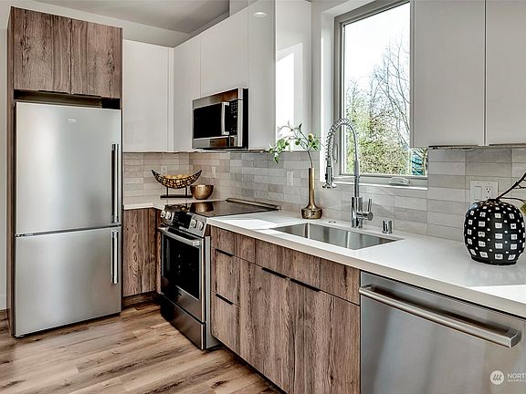 Stunning new construction in the heart of Ballard. Come & join one of the most vibrant & upbeat communities in Seattle. A short stroll to Ballard Ave, Woodlawn Park Zoo, local coffee shops, & restaurants. Soaring ceilings combined with floor-to-ceiling windows floods the home with natural light. Sleek & modern kitchen with stunning quartz countertops, custom wood cabinets, & stainless-steel Bosch appliances. Top floor primary bedroom with attached bath. Energy efficient ductless minisplits provide heating and cooling. Enjoy stunning views of the Olympic mtns, Queen Anne, & surrounding area from your private rooftop deck. 1 year home warranty. Walkscore of 93 = Walker’s Paradise!