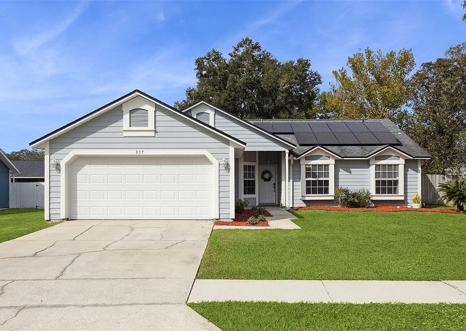 Welcome to 937 Old Mail Lane in Sanford?s desirable Middleton Oaks community! With FULLY PAID OFF solar, this beautifully maintained 3 bedroom, 2 bath home with an office enclosed by French doors offers modern updates and an inviting layout. Enjoy vaulted ceilings, abundant natural light, and open living and dining areas that flow seamlessly to the kitchen with breakfast bar. The primary bedroom is complete with an en-suite bath and an ample walk-in closet with built-in shelving. Step outside to a large screened-in patio overlooking a fully fenced backyard, perfect for entertaining or relaxing. Major updates include a newer roof (2020), newer hot water heater (2023), new garage door (2025), and paid-off solar panels for energy efficiency and low utility bills. Located in a quiet, single-entrance community just minutes from I-4, 417, 17-92, shopping, dining, and Historic Downtown Sanford.
