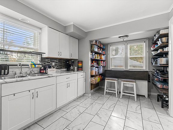 One-of-a-Kind Property with Optional In-Law Suite! Discover this truly unique home featuring a detached studio at the back of the lot - perfect as a private guest space, home office, or optional in-law suite! Enjoy peace of mind with a newer steel-shaker roof (valued at $42,000 with a 50-year warranty), newer washer and dryer, and fresh interior paint throughout the dining room, hall, kitchen, and family room. Additional updates include a new back porch door, newer vinyl flooring, and a new screen door! The light and bright updated kitchen features white cabinetry, stainless steel appliances, a striking backsplash, and an eating area. The separate dining room offers built-in cabinets, elegant wainscoting and chair rail. Relax in the cozy living room with a stone-accented fireplace, or unwind in the sunroom, surrounded by windows and highlighted by a beautiful wood-paneled ceiling. The recently painted basement includes three spacious bedrooms and versatile areas - ideal for a playroom, game room, gym, or hobby space. Outside, you'll find a fully fenced yard with a new fence, two sheds, and a playset - plenty of room for outdoor fun and storage. Located just minutes from Phillip's park Zoo and downtown Aurora, where you'll enjoy convenient access to shopping, restaurants, entertainment and more!