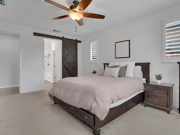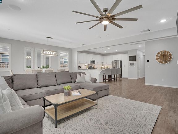 This well-maintained single-story home is move-in ready and has it all! Built just 8 years ago, the home offers 3 bedrooms, 2.5 bathrooms, and a spacious open floor plan designed for modern living. Enjoy plantation shutters, upgraded laminate flooring, and plenty of natural light throughout home. The kitchen features an oversized island with bar seating, stainless steel appliances, a gas stove, and abundant cabinet space - perfect for cooking and gathering. The primary suite is a true retreat with dual walk-in closets, a custom barn door, and a spa-like bathroom with dual vanities and a soaking tub. Step outside to enjoy outdoor living in the low-maintenance backyard, or take a stroll to Emerson Ranch Park, the baseball diamond, and picnic areas just minutes away. Added benefits include owned solar for energy efficiency and cost savings, plus no HOA! This home perfectly blends comfort, style, and convenience in one of Oakley’s most desirable neighborhoods. Beyond the community, Oakley continues to grow with exciting developments like the upcoming Shops at Laurel Fields and the future 55-acre Oakley Regional Park, bringing even more recreation and convenience right to your doorstep.