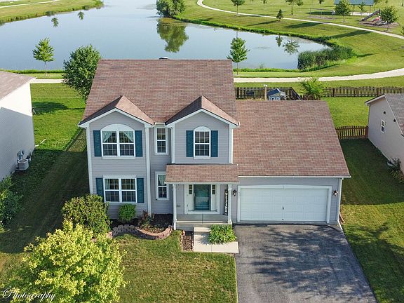 Wonderful pond views can be seen from this Prairie Springs home. This 3 bedroom, 2.5 bath home in rural Malta is the perfect place to call home. The peaceful setting welcomes you through the front porch and into the foyer. The inviting living room has large windows and allows for the southern sun to stream in. Adjacent to the formal living room is the dining room with pond views. What a wonderful place to entertain or host holiday dinners - your guests will love and remember the beautiful views. The kitchen with stainless steel appliances and Maple cabinetry has an eating area and also has pond views and easy access to the fully fenced backyard. Quick and easy family meals can be enjoyed here and then everyone can scurry outside to play! The family room offers vaulted ceilings, is wired for surround sound, and has easy access to the kitchen and backyard areas. There is a second-floor laundry conveniently located near all of the bedrooms. The owner's ensuite has the best views of the pond and backyard. Imagine waking up to those spectacular views. There is also a walk-in closet. Bedrooms 2 and 3 have southern exposure and are great rooms for kids and guests alike. There is also a full hall bath on the second level. The full, unfinished basement has a utility sink, custom shelving, a water softener, and a battery backup for the sump pump. So many possibilities exist when thinking about finishing up this great space. The backyard is fully fenced (the swing set does not stay and the play set is negotiable). There is a sandbox and let's not forget about those pond views! Maybe fishing is in your future. The walking path leads you to the nearby park area where the kids can play for hours! What's not to love about this Malta charmer! Malta is a golf cart community, is conveniently located to Jonamac Orchard, Route 38, and easy access to Rochelle and DeKalb. No HOA or SSA fees here! True rural living can be experienced in this home.