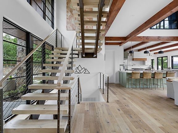 This amazing listing features a one-of-a-kind mountain top compound on one of the last large acreage tracts just 10 minutes from Blue Ridge. Includes a beautiful main house with state of the art modern amenities and breathtaking views, a fully loaded guest house, private hiking and ATV trails, greenhouse, floating infinity pool and more! Property backs onto US Forest Service for ultimate privacy. This modern mountain home comes fully designed and furnished by award-winning State and Season Home Design and has been featured on HGTV, Architectural Digest and others. Main house has 7 spacious bedrooms with walk-in closets, 2 offices, 2 kitchens, 4 full bathrooms and 1 half bathroom. Guest house has a full kitchen, 1 bedroom and 1 full bathroom. Spend your days on private ATV and hiking trails, go horseback riding in the adjacent US Forest Service land, take a swim in the infinity pool, enjoy your dinner on the deck with amazing mountain and sunset views, then settle down with a glass of wine in the hot tub! Ultimate privacy meets connectivity with an industrial generator, whole home water filtration, fiber optic internet and other touches to make your life in the country as comfortable as possible.