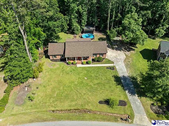 Welcome home to the beautiful neighborhood of Whitehall! If you are looking for peace and quiet that is tucked away on a 1.6 acre lot, this is the perfect home for you! This 4 bedroom (plus two bonus rooms), 3 bathroom home is the ideal retreat to enjoy a private wooded lot that provides all that nature has to offer! With just over 3,000 square feet, features of this home include a formal living room, formal dining room (with decorative glass French doors), den (with wood burning fireplace), kitchen, laundry room (washer and dryer convey), and 2 bedrooms on the first floor and 2 bedrooms on the second floor. The kitchen has been updated to include butcher block counter tops, tile backsplash, copper sink, stainless steel refrigerator, counter seating, decorative tile accent walls, bay window, and is open to the den. The first floor owner's suite is a large spacious room and includes an ensuite bathroom that is highlighted with a soaking tub with jets, and a walk-in closet. On the second floor there is a jack-n-jill bathroom that adjoins the two large bedrooms. Each bedroom also includes large, attached bonus rooms (all new carpet upstairs). The roof is new in 2022 and the HVAC units are new in 2020 and 2018. The exterior of this home includes a large welcoming front porch, a back patio, saltwater pool (pump and liner only 2 years old), detached storage buildings, and rain gutters. There is no HOA or restrictions for this neighborhood and is zoned for west Florence schools! Don’t delay in seeing firsthand all this amazing property has to offer!