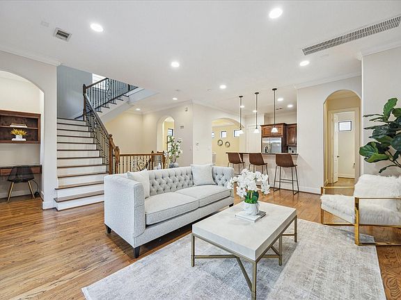 Beautiful, Mediterranean-Style 3 Bedroom/3½ Bath home with all the finishes. First floor features a 3rd Bedroom that could also be a second Primary Bedroom. The second story boasts hardwoods in Living Room, crown molding throughout, a built-in Office and a large balcony. There is also a bar area that features built-in wine storage. Kitchen has granite countertops, an undermount sink, stainless-steel appliances, solid wood cabinets and a Breakfast Bar. Large Primary Suite on the third floor with a luxurious Bathroom that includes his and her sinks, a jetted tub and a separate shower.
