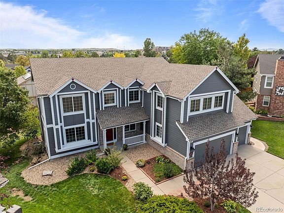 Come see your dream home in Highlands Ranch Eastridge! Located in a peaceful cul-de-sac, this 6-bedroom, 5-bathroom home offers luxury and functionality on a quarter-acre lot with mature landscaping. Enjoy privacy and tranquility while being minutes from top-rated schools, shopping, dining, and the fantastic community amenities of Highlands Ranch like fitness centers, pools, tennis courts, and trails. Step into a welcoming foyer with newly refinished hardwood floors, opening to a formal living and dining area perfect for entertaining. The heart of the home is the gourmet kitchen with custom granite countertops, a central island with seating, a new induction cooktop, and plenty of sleek cabinetry. The kitchen flows into the family room with a gas log fireplace and large windows, opening to a deck perfect for outdoor dining and relaxation. Upstairs, the primary suite features vaulted ceilings, an en-suite bathroom with a soaking tub, walk-in shower, dual vanities, and a spacious walk-in closet. Four additional bedrooms offer space for family and guests, including one with its own en-suite bathroom. The expansive upstairs loft offers a versatile space perfect for inspiring creativity and relaxation. The finished walk-out basement includes a large wet bar, space for a home theater or game room, an additional bedroom with French doors, and a bathroom. Step outside to an oversized lawn, landscaped garden, and beautiful entertaining area. The true three-car garage makes hiding from those snowy days a breeze.