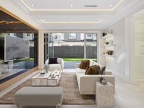 Stunning 2024 custom-built luxury home in Richmond’s prestigious Saunders neighborhood. This 4,681 sq ft residence on a 9,915 sq ft south-facing lot features 5 bedrooms + 6 baths, soaring 19’ foyer, elegant living/dining, family room opening to a sunny patio, and a spacious media room w/ wet bar. Gourmet Miele-equipped main & wok kitchens, plus a 1-bed legal suite. Retreat to the primary suite w/ fireplace, balcony, spa-inspired ensuite + sauna, and 636 sq ft deck. Comfort assured w/ A/C, HRV, radiant heating, and 3-car garage. Close to South Arm Park, schools, shops & dining—where luxury meets convenience.