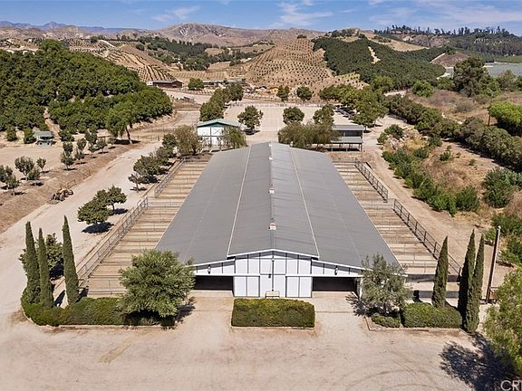 Looking for the ultimate breeding and training facility for your horses? This incredible 21+acre property features a 58-Stall, 16,230 square foot barn with four 2-story tack rooms, a 4-stall grooming station, 2 foaling stalls, a 3-stall farrier station, and a 3-stall wash station. The main arena is 155x285 with stadium lighting, there is also a phenomenal dressage arena, along with several sand pastures, numerous pipe corrals, 2 round pens, and an extra-large small animal pen. Relax in the 938 sq. ft. clubhouse with a kitchenette, manager's office, and two bathrooms. This beautiful property features 1600 avocado trees, with a current gross income of approximately $53,000 of income yearly, and the potential for a much greater income from the young avocado trees that have not yet reached maturity. If you choose to rent out the barn (which seller has done in the past), the gross income from a full barn is over $100,000 yearly. The beautiful, turn-key home has been lovingly remodeled and features beautiful views of this incredible ranch, there is also a separate 2-car garage. No shortage of water here, there is private, mutual water well, and a 5000-gallon water storage tank. This truly is an amazing property....don't miss this one!