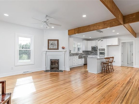 Welcome to this exquisite 1925 farmhouse remodeled to blend timeless charm with modern elegance. Situated on a sprawling 5-acre parcel. Here's a glimpse of the captivating features that make this home truly exceptional. Every detail of this farmhouse has been carefully redesigned to preserve its historic character while incorporating modern comforts. The result is a seamless fusion of old-world charm and contemporary living. The kitchen is equipped with a convenient pot filler, shaker cabinets, and soft close drawers The centerpiece of the kitchen is an expansive island, providing ample space for meal preparation and storage. Throughout the home, you'll find the original red pine hardwood floors restored to their former glory. Enjoy the breathtaking beauty of the property from the screened-in deck.