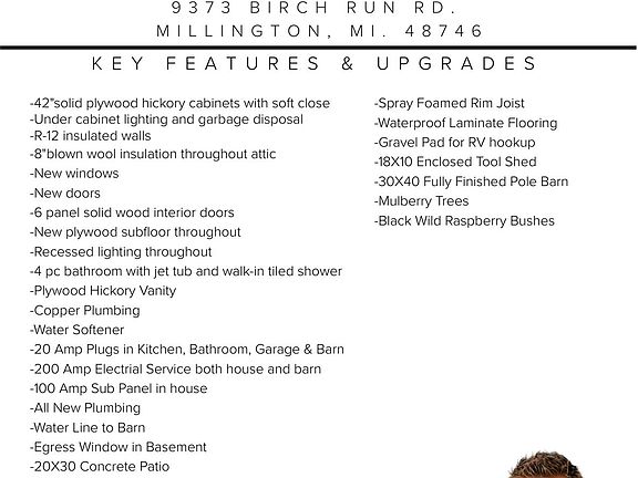 Additionally, the fully finished and insulated, 1,200 sq. ft. pole barn comes complete with forced air heating and cooling, water, 240V, and dedicated spaces for an office, workout room, studio, and workshop — ideal for bringing your personal dreams to life. No HOA here - and even a gravel pad to park a camper, or motorhome, and plug right in. Conveniently located just 5 minutes from I-75 at the Birch Run exit, 10 minutes from downtown Frankenmuth, you're never far from everything you need, while still enjoying the peace and privacy of country living. Don't miss your chance to own this unique property. Write an offer today before this one is SOLD!