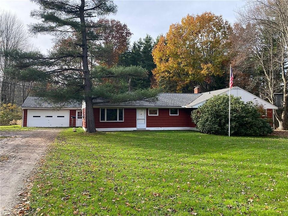 GREAT LOCATION....This 4 Bedroom Ranch is set on 9+Wooded Acres in Chardon Twp! Over 1700 sqft of living space includes large Family Room addition with brick gas fireplace, built-in shelves and sliders to backyard. Home office or small 5th bedroom. Newer gas furnace. Roof is approx 14 yrs old. 1-yr home warranty. Exterior of home recently stained/painted. This one-owner home need some updating/improvements and your decorative touches to make it your own. Set on deep heavily wooded lot with enough frontage to be divided with 2nd parcel being a flag shaped lot. 2+car oil-heated detached garage. Across from Tupelo Pond/Big Creek Park with horses permitted, close to Maple Highlands hiking trail/bike path, Chardon Square and just minutes to freeway access!