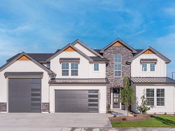 The Halifax is one of Eaglewood's newest floorplans and is designed to pack a punch! This home is immediately impressive with its exciting elevation and wide entryway that opens up to soaring 18' ceilings in the living room. A double sliding glass door opens up to your new covered patio for outdoor Idaho living! The stunning kitchen includes a double wall oven and 36" gas cooktop by Bosch. There is a full bedroom and bathroom downstairs for guests, and 4 more bedrooms upstairs including the vaulted master suite and XL 5th bedroom - all with walk-in closets. The Halifax also includes Moen plumbing fixtures, smart thermostats, and Trane heating and AC. We saved the best for last: in addition to the 3-car tandem garage, enjoy a HUGE 15x42 pull-through RV garage with dual 12x12 automatic doors at the front AND back. The Patagonia community is expansive, with parks, walking paths, and 2 pools! BTVAI. Home is under construction.