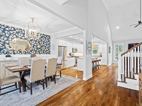 Fenced yardStylish light fixturesOversized islandGas stoveCustom built-in deskEasy sidewalksMain-level primary suite