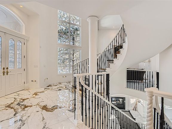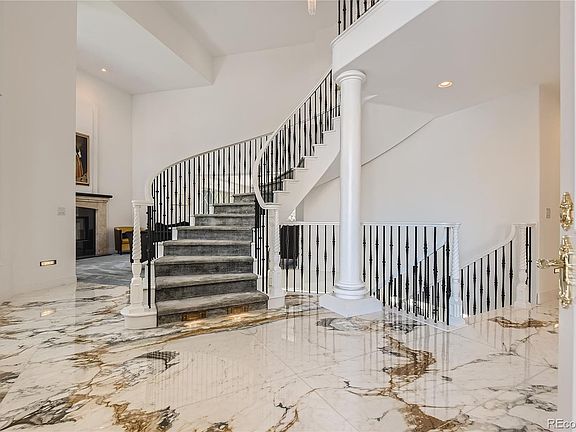 From the wrought iron circular grand staircase to the ceiling and wall treatments, everything is the best money can buy. Notice details like the authentic amethyst gem-stone bath sink and the full-slab quartz panels in the baths. This is unmatched quality through and through.
