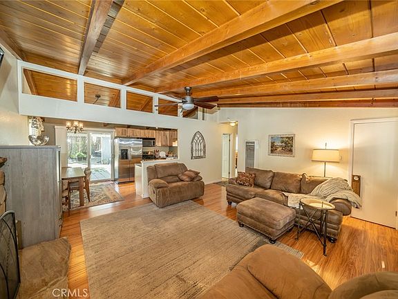 Cute as a Button! This quaint home is located close to town.  Perfect if you want a vacation home or live full time! The kitchen has stainless steel appliances and is open to the family room. You will love the high beamed ceilings! The bedrooms are generous in size.  The lot is partially fenced with beautiful trees, nice back patio and 2 storage sheds. SELLER is motiv.ated. All offers considered