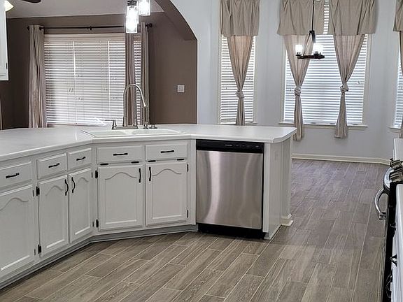 3 bedroom 2.5 bath ONE level Home on a fenced corner lot. Great room has corner fireplace, Formal dining room, Large kitchen with breakfast nook, custom cabinet, breakfast bar, & hearth room/family room open to kitchen. Arched doorways & Hardwood floors dressed up with a barn door in entrance, Large primary bedroom with salon bath with separate tub/shower & double sinks. 2 car side load garage & covered patio.