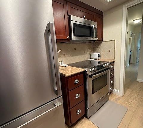 This lovely top (2nd) floor home is set in an ideal location overlooking a parklike open space of benches, Oak and Maple trees. With upgraded amenities, 2 bedrooms and 2 baths and a comfortable 1069 SqFt; welcome home to the desirable Oak Park community in the center of Silicon Valley. You will enter on the large plank hardwood floors throughout the entire living areas. The tray-ceiling kitchen is filled with Bosch stainless steel appliances, granite countertops and an abundance of cherry cabinets that extend out to the dining area. An en suite primary bedroom incudes a walk-in closet, remodeled bath with shower stall, ceiling fan and plantation shutters. 2nd bedroom includes mirrored closet, plantation shutters and upgraded bath with shower over tub. The living area is a comfortable size; looking out to the view. You will love your morning coffee on the balcony overlooking the parklike view or relaxing early evening looking out over the trees as the sunsets.