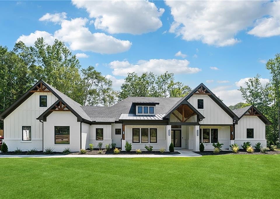Discover luxurious living in this stunning 4,530 sq. ft., 5-bedroom, 5.2-bathroom Modern Farmhouse home nestled on a picturesque 1.5-acre lot (1 acre cleared). This property features an elegant kitchen with 12-foot ceilings, a formal open concept dining room, a dedicated office, and a versatile bonus room above the 3-car garage. Entertain in style with a large playroom complete with a half bath, built-in sink, drink cooler, custom cabinets, and floating shelves. The expansive covered back porch is a true outdoor retreat, boasting a built-in vanity, drink cooler, grill, and wood-burning fireplace. With ample space for parking, relaxing, and hosting, this home offers the perfect blend of sophistication and functionality. Schedule your private showing today!