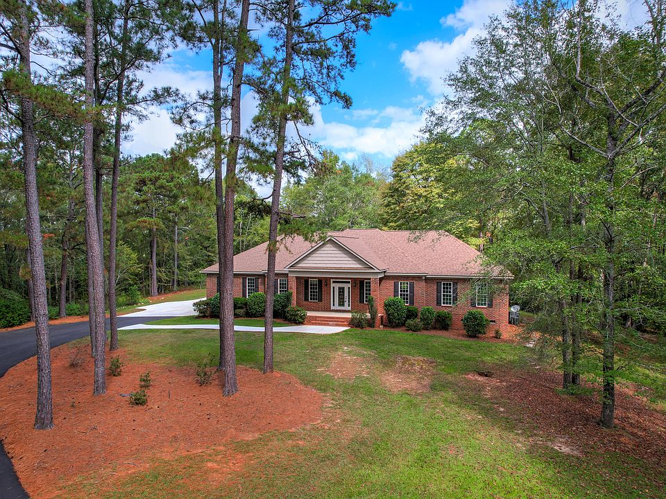 Private Estate Living on 13.59 Acres | 4BR/5BA Brick Home. Welcome to this rare and refined single-level brick estate. Tucked away on a long private drive within Currytowne Station but not subject to an HOA, this home blends timeless craftsmanship with modern convenience and exceptional space for both entertaining and everyday living. As you enter through the covered front porch, you're greeted by a spacious foyer that opens to a large study and an oversized living room, seamlessly flowing into a grand formal dining area. Ideal for hosting large gatherings or creating a versatile mixed-use space. The true hardwood floors, freshly refinished, shine throughout the main living areas, adding warmth and elegance to the home. At the heart of the home, the expansive kitchen is a culinary dream, featuring an oversized island, ample counter space and cabinetry, a cozy breakfast nook, abundant natural light with views of the serene backyard, and a covered back porch. Just off the kitchen, the family room offers a casual living space perfect for relaxing or informal entertaining. This home offers 4 large bedrooms, each with its own private en-suite bathroom, plus a 5th full bathroom for guests. The split floor plan provides privacy and comfort for all, with the grand primary suite tucked away for tranquility. Additional Features include a detached 2-car garage with workshop, an oversized laundry room with plenty of utility space, a new shingled roof, and no HOA. Allowing the freedom to make the property your own. The rear acreage offers breathtaking natural views, lush woodlands, and a peaceful creek, creating the perfect backdrop for nature lovers and those seeking solitude. All this, just 8 minutes from I-20 (Exit 1) and close to shopping, dining, and the medical district.