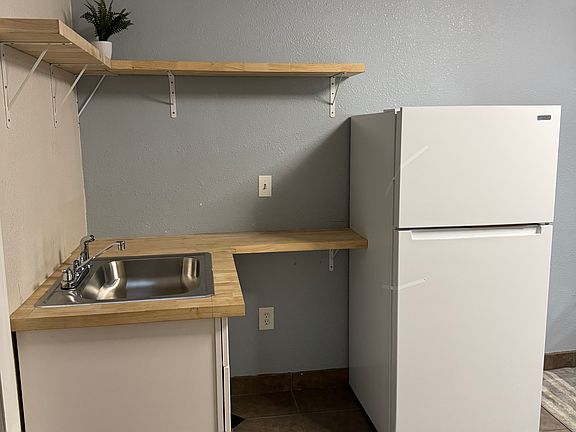 This modern 420 sq. ft. studio apartment has been fully updated and comes fully furnished, offering a turnkey living experience. The highlight of this unit is the brand-new kitchenette, featuring butcher block countertops, open shelving, a brand-new refrigerator, and new sink and faucet hardware. You'll also be the very first resident to enjoy the newly installed shower stall, complemented by updated bathroom finishes.
