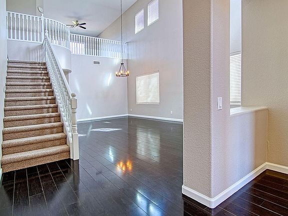 Layout: The upstairs features 3 bedrooms and 2 full bathrooms. The master has a generous walk-in closet. Also upstairs is a large open loft-family room. The main floor features a formal living room, formal dining room, family living room and kitchen nook. The granite countertops & stainless steel appliances and pantry in the kitchen is fit for a chef. The appliances include a refrigerator, smooth-top cooking range/oven, built-in-microwave, and dishwasher. The laundry room is furnished with a washer and dryer. Off of the kitchen and family room is a guest powder room. Off of the formal living room is a Guest Suite that has its own full bath and bedroom. Three car garage with built-in storage racks. The lot backs up to and views the lake out of the kitchen, dining room, family room , master bedroom and loft windows. Dine & relax outside under a covered backyard patio (North/South exposure). The backyard is fully fenced. The side yard also has a vegetable garden area. The neighborhood is ideal for families with play structures, basketball courts, and picnic areas.