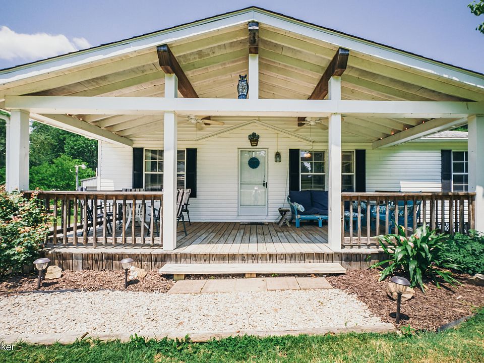 This home is located in a beautiful, unrestricted, lake community and offers access to the water with its own dock. The property features spacious living areas, including a large, open living room and dining area, as well as a fully equipped kitchen with modern appliances. The bedrooms are comfortable and offer plenty of storage space, and the primary bathroom is spacious with a walk-in closet. Outside, you'll find a lovely, covered front deck that's perfect for relaxing and enjoying the beautiful, peaceful setting. This property is perfect for anyone who loves the outdoors and wants to enjoy all that lake living has to offer. Low maintenance with LVP floors. AirBNB/rental friendly subdivision. The garage with a lean to is great storage for lawn and lake toys on the property.