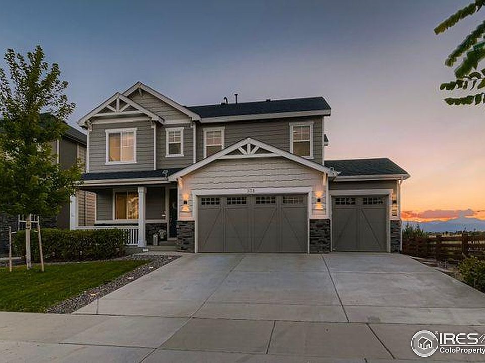 SHOWSTOPPER! Sophistication, Luxury and UNFORGETTABLE BREATHTAKING MOUNTAIN VIEWS! THIS IS THE STANDOUT "MOUNTAIN VIEW" HOME OF ALL HOMES! Perfectly positioned, this home backs to EXPANSIVE OPEN SPACE, LUSH GREENBELTS & SCENIC TRAILS. It commands unobstructed sweeping panoramas of the majestic Rocky Mountains-setting it apart from anything else! Soaring windows flood the interior w/natural light & frame jaw-dropping views like living artwork. You will love the seamless harmony between indoor/outdoor living. Spanning over 4,000 Sqft, this beauty showcases premium finishes, thoughtful design & elevated details at every turn. The main level features a gracious family room w/sleek fireplace & an interchangeable sun-filled dining/living/office space area. Rich walnut designer floors gleam beneath refined lighting, complemented by custom window treatments & upgraded handrails that elevate the home's style. At the heart of the home, the chef's kitchen combines style & function w/crisp white shaker cabinetry, subway tile, quartz counters, a sensational expansive center island, decorator lights, pantry & high-end stainless appliances-including gas cooktop, dual oven/microwave & stylish vent hood. Step outside to the spacious covered deck & private backyard oasis-perfect for entertaining. Host unforgettable summer bbq's beneath the stars or unwind in the hot tub, surrounded by lush greenery, a large fenced yard & sweeping views with radiant pink/orange sunsets. Upstairs you will love the HUGE LOFT & 4 beds including a serene primary suite that captures breathtaking mountain views right from your bed. The spa-inspired en-suite bath has dual vanities, an OVERSIZED glass shower & walk-in closet. The FINISHED WALK-OUT LOWER LEVEL, accessed by an open stairwell, extends the living space w/a spacious REC room & a guest suite w/bath. Attached 3-car garage. Unbeatable location-steps to clubhouse, 2 pools, gym, parks, trails, playgrounds & near the new Erie Community Center & schools.