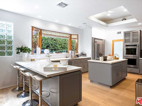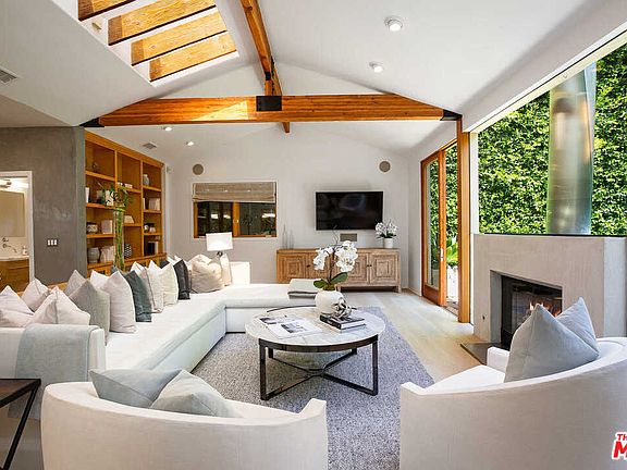 This recently remodeled 4-bedroom home in the coveted "Alphabet Streets" of the Pacific Palisades is the perfect blend of modern design and Mediterranean elegance. The towering foyer leads to a bright open floorplan with gourmet chef's kitchen featuring Caesarstone countertops, Viking appliances, large center island and breakfast bar. Transition from the spacious dining room and open family room (w/rustic wood beam ceilings and fireplace) through sliding glass walls that beckon to the private backyard. Ground level en-suite bedroom is perfect for guests or as a home office. Upstairs are two guest bedrooms with an expansive west-facing terrace, plus a spacious master suite with fireplace, private balcony, custom walk-in closet and oversized spa-like bathroom with large shower and jetted tub. Super close to dining and shopping at the cherished Palisades Village, the best hiking trails and the beach. Enjoy the Palisades' "small town" feel while still being connected to the "big city."