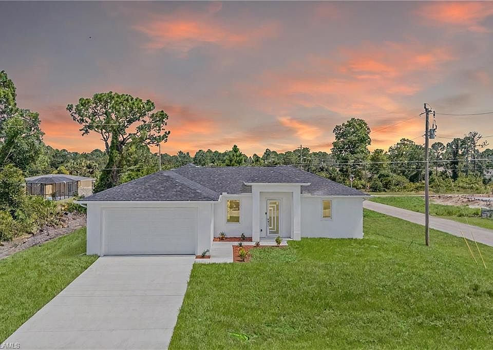 Don’t miss this opportunity to own a brand-new 3 BEDROOM, 2.5 BATH home on a desirable CORNER LOT in the rapidly growing community of Lehigh Acres. This property offers a thoughtfully designed OPEN-CONCEPT FLOOR PLAN with HIGH CEILINGS, ELEGANT TILE THROUGHOUT, and IMPACT-RESISTANT WINDOWS AND DOORS for safety and peace of mind. The spacious, light-filled kitchen features QUARTZ COUNTERTOPS, STAINLESS-STEEL APPLIANCES, and AMPLE CABINETRY, flowing seamlessly into the living and dining areas — making it the perfect space for ENTERTAINING or EVERYDAY LIVING. The OWNER’S SUITE includes a generous WALK-IN CLOSET and a MODERN BATHROOM designed with both style and comfort in mind. Enjoy the practicality of a TWO-CAR GARAGE with abundant parking and storage space.bGREAT INCENTIVES AVAILABLE — ASK FOR DETAILS!