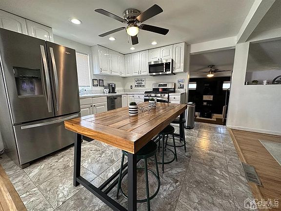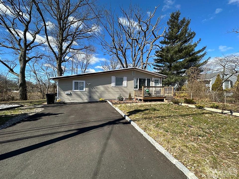 Beautifully updated 2-bedroom 1 bathroom ranch in Aberdeen Township (Keyport mailing address). Eat-in-kitchen with stainless steel appliances, ceramic tiled floors, formal dining room, living room, sunken family room, all newly painted. Bathroom features a pedestal sink and a shower/tub. New torch down roof (2023) with all new plywood, new HVAC (2022), paved driveway (2022) with new blocks, new front and back doors with storm door. So many updates! Additional features: hardwood floors, ceiling fans, laundry room, shed, newer deck and water-views of Raritan Bay! Close to shopping, restaurants, beach, playground and major highways for commuting!