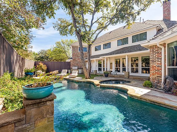 Located in the desirable Northlake Woodlands neighborhood, this one-owner home offers the perfect blend of luxury, comfort, and thoughtful design. From the moment you step inside, you’re greeted with beautiful views of the landscaped backyard and sparkling pool. The spacious floor plan is ideal for entertaining, with formal living and dining areas and a welcoming family room with a fireplace that opens to the kitchen and breakfast room. The kitchen is well-appointed with granite countertops, gas range and stainless-steel appliances, double ovens, creating the perfect space for everyday living and casual gatherings. The open kitchen and family room seamlessly extend to the backyard retreat, designed for entertaining with a built-in grill, pool and spa, turfed putting green, and a low-maintenance composite privacy fence. A private office sits adjacent to a full bathroom, providing flexibility to serve as a secondary downstairs bedroom if desired. The downstairs primary suite features views of the pool, built-in cabinets and shelves and fireplace. Upstairs, a large game room anchors four additional spacious bedrooms, including a second primary suite—ideal for multi-generational living or hosting guests with ease. Additional features and updates include and are not limited to hardwood floors throughout the downstairs and upstairs game room, an EV charger in the three-car garage, Class 4 impact-resistant roof, blown-in foam insulation, and updated windows. Situated within the award-winning Coppell Independent School District, this home combines modern amenities with timeless appeal, offering an exceptional lifestyle for everyday living and entertaining.