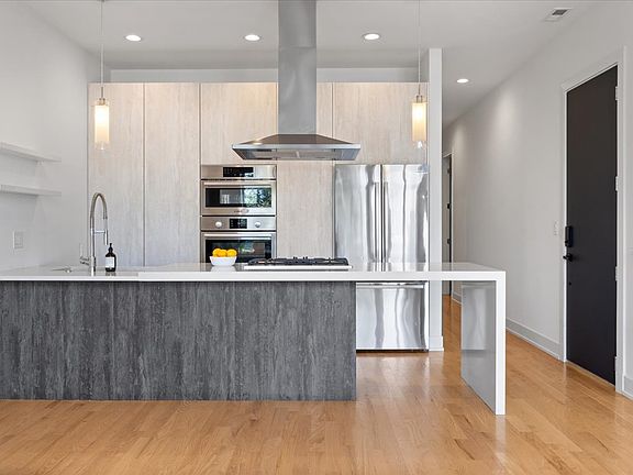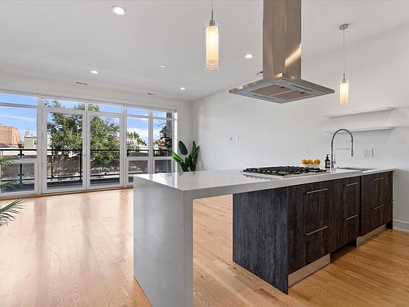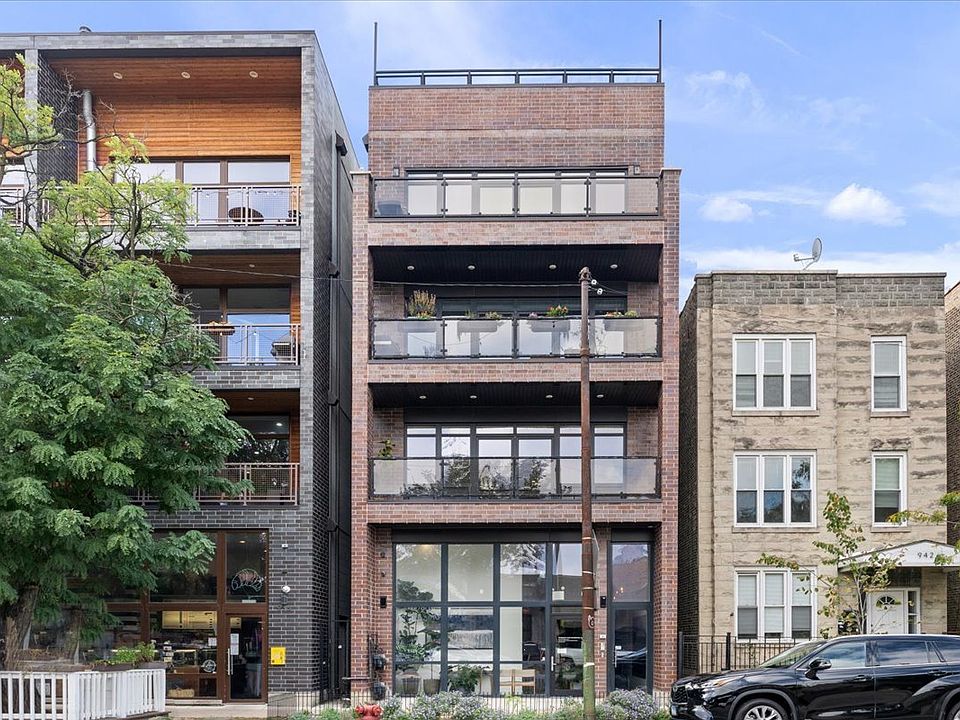 Stunning newer construction condo in the heart of Ukrainian Village's California Corridor! This bright and spacious 3BD/2BA home features 9.5' ceilings, wide-plank oak floors, and custom millwork throughout. The open-concept living area offers a wide, stately living room with skyline views, custom built-ins in the dining area, and access to a 24'-wide balcony-perfect for entertaining. The chef's kitchen showcases custom Spanish cabinetry over 100" tall, integrated Bosch appliances, Zefyr range hood, and quartz countertops. The primary suite includes a large custom walk-in closet, Juliet balcony for natural light, and a spa-inspired bath with a 7' double vanity, HansGrohe fixtures, Spanish tile, and an oversized glass shower. Additional features include new AC (2024), new light fixtures, fresh paint throughout, and access to a recently expanded shared rooftop deck with maintenance-free composite decking. Smart home features and one included parking space complete the package. Prime location-walk to Humboldt Park, or eat at nearby favorites such as Rootstock, Kai Zan, La Boulangerie, Spinning J Bakery, Segnatore, The Hi-Lo and more of the area's best dining and shopping. Move-in ready and impeccably maintained!