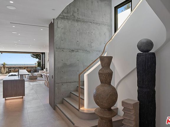 A rare beachfront trophy estate, this modern new-construction masterpiece defines contemporary coastal living at its finest. Spanning three levels with 7 bedrooms and 8.5 baths, the residence blends scale, sophistication, and effortless functionality for both refined entertaining and everyday living. The main level makes a dramatic impression with a spacious living and great room anchored by a sleek fireplace, all opening directly to an expansive oceanfront deck. A showpiece chef's kitchen featuring a large island and custom built-in banquet seating flows seamlessly into the entertaining areas, designed to capture panoramic ocean views and natural light. Outdoors, the private retreat includes a pool and spa with cascading waterfalls, firepit, multiple lounge areas, and a fully equipped outdoor kitchen. Two primary suites, located on the second and third floors, each offer private oceanfront terraces, spa-inspired baths, and luxe finishes. Four additional en-suite bedrooms upstairs provide generous accommodations for family and guests, while a seventh bedroom with adjacent bath on the main level is ideal for guests or staff. Architectural lighting, striking staircases, and meticulously curated details run throughout. Additional features include state-of-the-art smart-home technology, high-end finishes, and a two-car garage with an innovative mechanical turntable. Offered individually or together with its sister property at 940 Palisades Beach Rd for $38,500,000, this estate represents a rare opportunity to own an extraordinary beachfront residence along Santa Monica's coveted Gold Coast.