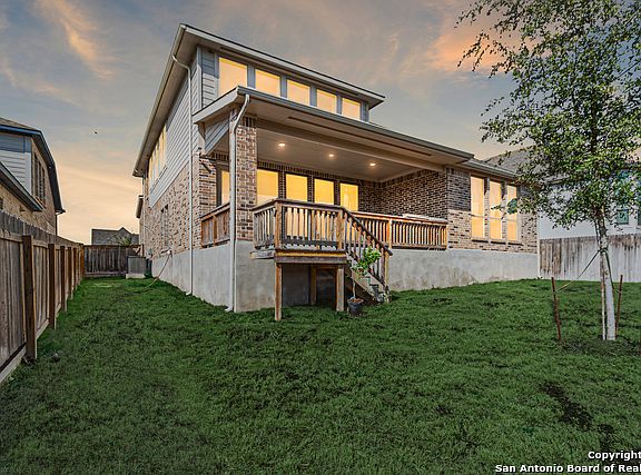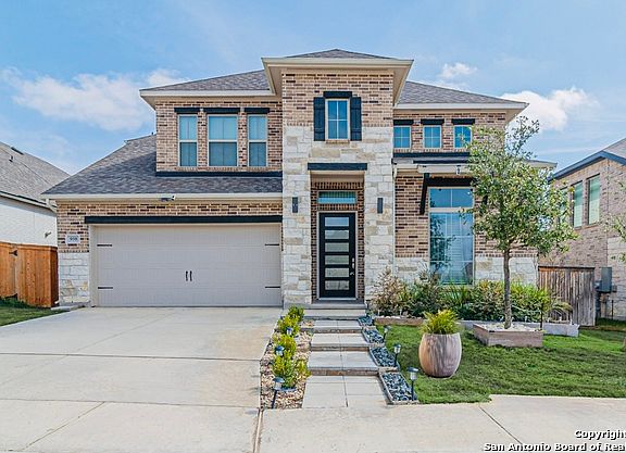 This stunning Perry-built home is located in the highly desirable Weston Oaks community. With five oversized bedrooms and 4.5 baths, this home offers a thoughtfully designed floor plan that blends comfort and functionality. The open-concept layout is perfect for entertaining, seamlessly connecting the main living areas. The primary suite is conveniently located on the main floor and features a luxurious en-suite bath with dual vanities, a standalone shower, and a relaxing garden tub. A secondary bedroom suite on the first floor provides a private space for guests. Upstairs, you'll find a spacious game room/flex space, ideal for movie nights or additional entertainment. The covered patio offers a peaceful outdoor retreat where you can unwind and enjoy the greenbelt views with no rear neighbors. This home is truly exceptional-schedule a showing to experience its charm and elegance firsthand!