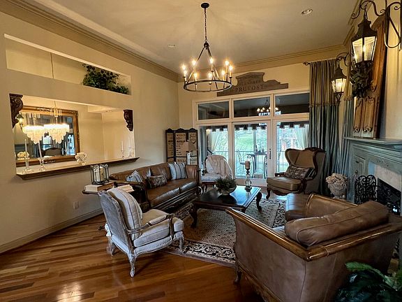 - Features: Fireplace(s), Wood Flooring, Kitchen Island, Eat-in Kitchen, Wood Cabinets, Hardwood Floors, Crown Molding