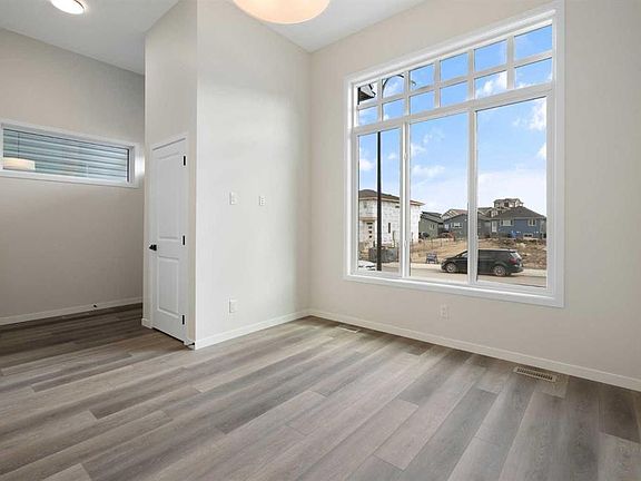 Impeccable design, full basement development, & room to grow—welcome to the Strathcona model by Cedarglen Homes. Located in vibrant Livingston, this 4-bedroom laned home blends practical layout with elevated finishes, perfect for modern family living. Step inside to a bright, open concept main floor where luxury vinyl plank flooring flows throughout. The heart of the home is the kitchen—designed with both beauty and function in mind. A long quartz island offers extra prep space and casual seating, while pot lights overhead keep things bright and welcoming. Sleek black hardware adds a designer touch, tying together the modern cabinetry and finishes. You’ll receive a $6000 appliance allowance to select your desired appliances at the builder’s supplier. Just steps down, the great room opens up with soaring ceilings that create a grand, airy feel—ideal for relaxing or entertaining. The dining nook is adjacent to the kitchen and features a large window allowing tons of natural light to shine through. Step outside to the completed rear deck, ready for weekend BBQs or quiet morning coffee. Upstairs, the layout keeps life organized and comfortable. The primary suite features a walk-in closet and a 4-piece ensuite with dual sinks & a tiled walk-in shower. Two additional bedrooms, a full bathroom, and a conveniently located laundry room complete the upper floor—keeping everything close at hand. Downstairs, the fully developed basement adds even more living space. A spacious rec room is perfect for movie nights, workouts, or a kids’ play zone. You'll also find a fourth bedroom, a full 4-piece bathroom, and a large mechanical room for extra storage. The separate side entry opens the door to future flexibility—whether for guests or extended family. This move-in-ready home checks every box, from curb appeal to convenience. Nestled in the vibrant community of Livingston, you'll love having access to the Livingston HOA Hub, featuring an indoor gym, hockey rink, splash park, tennis courts, playgrounds, and more! Plus, with miles of walking/bike paths, an off-leash dog park, and a bike pump track, there’s something for everyone to enjoy. As the community continues to develop, more schools, shopping, and businesses will make Livingston an even more convenient and desirable place to call home. Ready to make your move? Schedule a private tour today and see why the Strathcona is the perfect fit for your next chapter. *Some photos are virtually staged.*