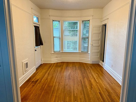 Live downtown in our cool "Painted Lady" 4-plex, a Victorian classic with high ceilings, wood floors. This spacious main floor unit features a super long living room with a cool mystery door as part of the living room. The room is split by a grand archway, with the FP surrounded by built in book cases. Split it up into TV room and game-sitting room, options are endless. Book ending this fabulous space, multiple windows facing east into the courtyard and west too. The bedroom features a giant bay window that bathes the space with light. At the back of the unit is the the galley style kitchen. It has touch of vintage with the tiled backsplash and wainscotting, plus tons of counter space and a dining nook with large window. A ceramic top electric stove, dishwasher and refrigerator, are provided. There is a charming courtyard with a bistro table shared with the other residents in the building. In the adjacent basement there is coin operated laundry and you get your own storage locker too. Rent includes water/sewer/garbage. Resident pays for electricity. The Painted Lady is located on the southwestern tip of the PSU campus. Transit is a breeze, and there is quick access to the MAX Green Line, the MAX Orange Line and the MAX Yellow Line at the PSU South/SW 6th & College MAX Stn stops. Parking information: The neighborhood is zoned B, and parking permits are required for long term parking. Here is a link where you will find more details and the permit application and pricing. Details: Rent - $ 1,295 Deposit - $900 Pet deposit - $250 / pet (on a case-by-case basis = requires good reference from current landlord for your pet). Lease - 1 year Renter's Insurance - REQUIRED This unit is posted for advertisement 11/4/25 at 3:55 PM, and applications will be accepted 11/7/25 at 3:55 PM. The dwelling unit is not a "type A Unit", Accessible Dwelling Unit.