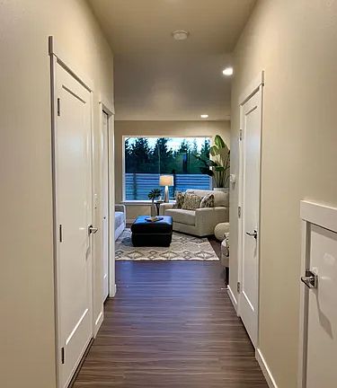 This recently constructed green-built home is a West-coast contemporary style design on a quiet loop at the north edge of the peaceful Cordata neighborhood. Energy smart features of this well-insulated home include solar panels, double-pane windows, on-demand tank-less hot water and an efficient ductless-mini-split heating and cooling system. With luxury vinyl plank throughout the first floor, the entryway leads to an open-plan great room at the back of the house, featuring a gas fireplace, patio door and large windows, dining area and a modern kitchen with quartz countertops, Euro-style gloss cabinetry, stainless steel appliances and a gas range. A half bath powder room is located nearby, just off the first floor entry hallway. Upstairs, a small landing nook overlooks the vaulted foyer and leads to a master suite. The hall beyond leads to three more carpeted bedrooms, perfect for the larger family or for home offices and guest rooms, plus another full bathroom and the laundry room. Out front, the driveway has space for two cars adjoining the double garage. In the back the fully-fenced, low-maintenance backyard contains a small patio for al fresco dining or relaxing. Neighborhood views include North Bellingham Golf course and Mount Baker. Cordata is a pedestrian friendly, contemporary and quiet neighborhood. Dozens of miles of walking trails and other outdoor amenities are within easy reach, including in the nearby 25 acre Cordata Park and 20 acre Juliana Park. The house is a short distance from Whatcom Community College, Cordata Elementary, Community Food Co-op, Costco, Bellis Fair Mall and Guide Meridian. One year lease required. Utilities not included; tenant is to cover utilities separately. There are no other fees. No pets. No smoking or vaping in the residence. Prospective tenants may tour the property after applying using the Zillow Application.