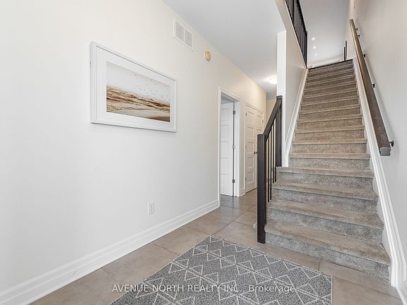 Modern 2015-built 3-bed, 4-bath semi in a prime location with quick highway access to downtown and many amenities. Freshly painted throughout, the main level features a tiled foyer, bedroom or home office, full bath, and access to the very oversized garage. Open-concept second level offers 9-ft ceilings, hardwood floors, pot lights, and large windows bringing in tons of natural light. Stylish kitchen with quartz counters, island, backsplash, stainless steel appliances, and access to a private balcony. Very spacious living and dining areas and a powder room complete the 2nd level. Upper level includes two bedrooms, each with an ensuite, plus convenient laundry. Basement offers plenty of storage. Walking distance to shops, schools, and transit.
