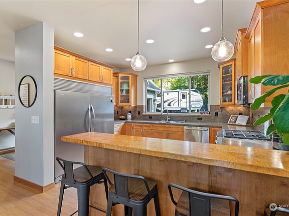 Stunning custom home with soaring ceilings and natural light shining in from every angle. The quality of this home partnered with it's beautiful high end features will leave you breathless. From the steam shower and heated floors in primary to the 2 way fireplace and permanent exterior lights, everywhere you look something amazing has been added to enhance this home. It has newer high efficiency heating, AC, circulatory tankless hot water heater, Honeywell UV filtration system and RV parking w/hookup. Check out the massive bonus room that could be a 2nd primary or a potential future ADU.Located in one of Bellingham's most desirable school line ups and close to all of the city amenities including world famous Galbraith mountain.