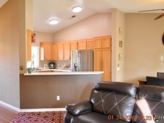 Welcome to our beautiful 3-Bedroom 2-Bathroom located in a very nice and quiet area of Calexico. This MOVE_IN ready house features Laminate flooring through all living areas, carpet on bedrooms, tile on bathrooms, the freshly painted indoors,= with neutral colors are very invited and lend themselves to any decor, very spacious kitchen with lots of cabinets space plus the floor plan is great for entertaining. The back yard is ready for entertaining too, with artificial grass that will lower your monthly water bill, cement slab with an octagonal gazebo 16'x14.5' and a second open cedar gazebo on the grass. The house comes with 12 solar panels that are full paid and will save you lots of money in your electrical bill.Call your favorite agent ASAP and schedule an appointment, you absolutely have to check-out this beauty.