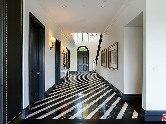 Stunning designer home tucked on private cul-de-sac in prime Beverly Hills location just north of Sunset. Grand entry w high ceilings & center hall gallery, spacious living room + formal dining, fabulous open chef's kitchen featuring motorized Fleetwood glass doors to backyard, Bookmatch Calcutta Marble kitchen, custom cabinetry, 14 foot island, Wolf professional stove/oven, double refrigerators. Spacious family room w large wet bar & wine fridge all opening to outdoor BBQ, saltwater pool w oversized spa, yard and large entertaining areas all around. Stunning master suite w approx 1,000 sq ft deck w/ fireplace overlooking city views. Luxurious master bath w centerpiece tub, oversized shower and walk-in closets. All wired for sound w media room upstairs & 3 fabulous kids suites down + separate maids. White oak hardwood floors stained black throughout, 2 original wood burning fireplaces, Marvin windows, Lutron lighting system, 4 zone heating/cooling.