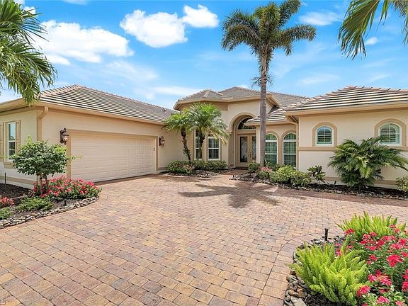 Live the ULTIMATE LIFESTYLE IN The Quarry, a Golf and Beach Community (placed in the top 4% of clubs and communities globally). Step inside this immaculate WATERFRONT home and enjoy BREATHTAKING Sunrise Views of Stone Lake. Boasting 4 spacious bedrooms plus a den, 3 full bathrooms, and a 2-car EXTENDED air-conditioned garage complete with epoxy floor and custom organizers, this home provides over 3,000 square feet of comfort and style. The NEWLY remodeled kitchen is a chef's dream and comes equipped with top-of-the-line appliances (WOLF AND SUB-ZERO), custom cabinets, and quartzite countertops. The crown molding adds a touch of elegance throughout the home, while the custom built-in bar in the great room is perfect for hosting gatherings for friends and family. The recently remodeled primary bathroom comes with custom tile and cabinets for a luxurious and spa like feel. Step outside to the expansive lanai, complete with a custom outdoor kitchen, marble flooring, and Cyprus wood ceiling for the ultimate outdoor living experience. The salt-water pool/spa is perfect for those hot summer days. And don't forget about the deeded dock with covered canopy, hydraulic lift, and jet ski capability for all your boating needs. A 2018 Bennington Pontoon Boat is available for purchase. The whole house generator, electric roll down shutters and accordion shutters will ensure your home is always protected during storm season. This home also features a newer Roof (2019), newer dual zoned air conditioners (2022), plantation shutters and has been freshly painted inside. Tucked away in North Naples, The Quarry isn't just a community, it's a resort-style escape on 500+ acres of pristine lakes and preserves! Vacation vibe amenities include the newly renovated beach club with restaurant, tiki bar, resort pool, lap pool, wellness center, 5 lighted soft-surface tennis courts, 3 lighted bocce courts, 5 lighted pickleball courts, a tennis shop, boating, kayaking, fishing and the full-time activities director will make sure a great time is had by all. In addition, various optional golf memberships are offered at the privately owned Quarry Golf Club - (NO WAIT LIST). Designed by world-renowned architectural team of Dr. Michael Hurdzan and Dana Fry in 2007, this Par 72 championship golf course offers an unparalleled golf experience with spectacular views. Water appears on every hole, and the course is a true test for golfers of all levels. With 5 sets of tees and a unique layout to every hole, you'll never get tired of challenging this exceptional course. Don't miss out on this incredible opportunity to own a piece of paradise in The Quarry!