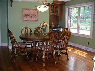 Custom Built One and a half story home nestled against wooded acreage. 1st floor designed for easy living with all oak wood floors. Oversized Kitchen that anyone would love to spend time in with an abbundance of cabintry, large center island all with granite tops.6 burner viking range. 2 ovens.Walk in pantry.Large eating area with wine cooler built in and more cabinets.Access from the Kitchen to the brick patio. 1st floor laundry. 1st floor powder room. Large formal dining room. Beautiful Great Room with woodburning fireplace.1st floor Master Bedroom with large walk in closet, linen closet and Master bath with vanity area. Both bedrooms on the upper level boast hardwood floors and large closets. Full bath situated between the bedrooms. Full basement with wide access door in the rear to make it easy to move objects in and out and give you easy access to the backyard. Dbl attached garage. Home warranty.